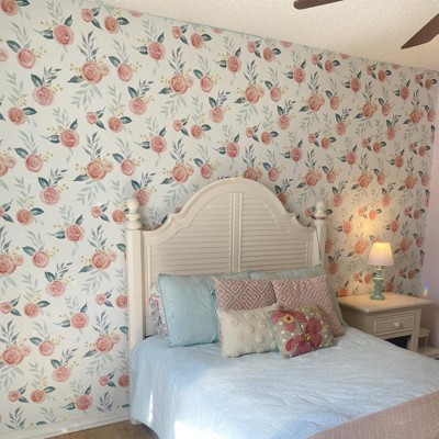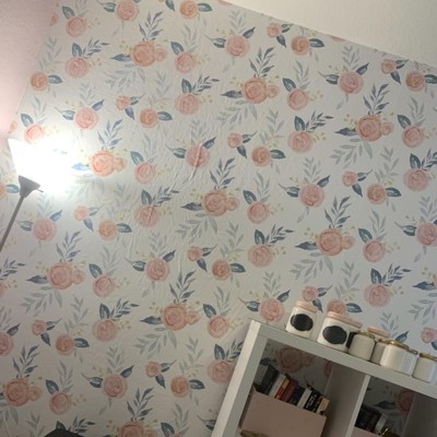 RoomMates Watercolor Roses Magnolia Home Wallpaper: Self-Adhesive Floral, Peelable, Repositionable, 34 Sq Ft Coverage
