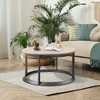Rosary Blenn Round Coffee Table – Triangular Metal Frame, 29.5"D x 29.5"W x 16"H