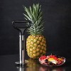 - Cores and slices pineapple into even rings with ease