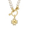 Our classic-meets-contemporary 3.5-4mm cultured freshwater pearl necklace shines with an 18kt yellow gold over sterling silver toggle clasp centerpiece. Wear this stylish statement as is, or customize with your favorite charms for a look that's special to you. White pearl toggle necklace. Pearl InformationPearl Type 1: Freshwater-CulturedPearl Minimum Color 1: Freshwater-CulturedPearl Lustre 1: Medium-LusterPearl Shape 1: Semi-RoundPearl Uniformity 1: GoodPearl Surface Blemishes 1: Moderately BlemishedPearl Stringing Method 1: Moderately BlemishedSize Per Pearl 1: 3.5-4mmNumber Of Pearls 1: 102