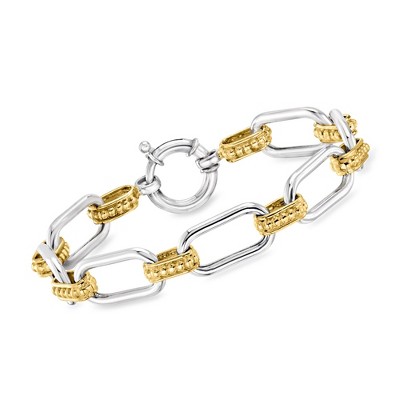 Product Name: Ross-Simons Italian Sterling Silver and 18kt Gold Over Sterling Alternating Cable and Paper Clip Link Bracelet Size 7