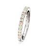 Celebrate an October birthday (or any birthday!) with this white opal ring. The 2mm white opal rounds line the top of the polished sterling silver band, creating a mesmerizing look. 1/8" wide. White opal ring. Stone InformationGem Type 1: OpalStone Cut 1: Good-CutStone Color 1: WhiteStone Clarity 1: WhiteStone Shape 1: Round-ShapeStone Creation Method 1: NaturalStone Treatment Method 1: ImpregnatedStone Weight 1: 0 CaratsNumber Of Stones 1: 19