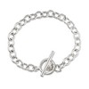A classic, this sterling silver cable-link bracelet finishes with a contemporary toggle centerpiece that acts as a fashionable and functional clasp. Whether worn as is or paired with a charm from your personal collection, it's a stylish staple you'll wear again and again! Sterling silver cable-link toggle bracelet.