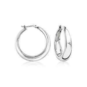 Graduated hoop earrings shine in classic and easy-to-wear sterling silver. The perfect complement to any look. Hanging length is 1". Snap-bar, sterling silver hoop earrings.