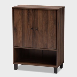 Baxton Studio Rossin Walnut Finished 2 Door Wood Entryway Shoe Storage Cabinet Brown: Freestanding Organizer, Holds 8 Pairs