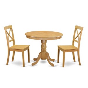 Round Kitchen Table Set - 3 Piece Dining Table with 2 Chairs - Solid Wood Construction - 1 of 4