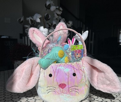 Round Sequins Bunny Easter Basket Iridescent - Spritz™