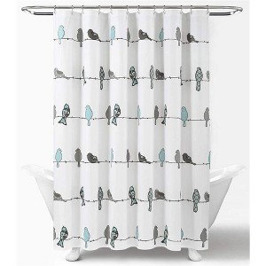 Rowley Birds Shower Curtain Blue & Gray - Colorful Floral Bird Pattern 70.8x70.8 Inch