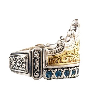 Product Name: Royal Crown Blue Cz Statement Ring Two Tone Plated Men Women Ginger Lyne Collection