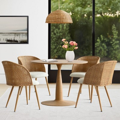 Royal Hampton 5 Piece Dining Table Set, 4 Chairs, Slatted Backs, Brown Solid Wood