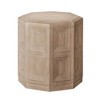Enhance your living space with this end table, a perfect fusion of durability and aesthetics. Its rich tawny brown finish adds warmth and sophistication to any interior. Furthermore, the ornamental sunken panels elevate its visual appeal, making it a statement piece. Plus, the integrated casters provide easy mobility, ensuring effortless repositioning. Check out our Kizie collection for more.