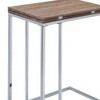 This side table is a perfect addition to any living room with its stylish chrome base and weathered oak top. A bonus feature to an already useful functional table is the top and its ability to expand from 12" to 18". It allows for use as a place to rest a cup of coffee or a dinner setting for those movie nights.