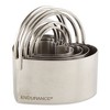 We strive to offer quality kitchen products and cooking tools at competitive prices. Our set of four Endurance round biscuit cutters, plain are a perfect example. Whip up some excellent biscuits for your family and friends with these biscuit cutters. The set is constructed from a heavy-gauge polished stainless steel that will last for years of use in the kitchen. Featuring a generous depth for thick holiday biscuits, they have handles that arch high over the cutters, so there's plenty of grip room. Also great for cutting desserts and hamburgers, the set includes four different sized cutters for a multitude of uses. 3-inches by 3.25-inches, 2.5-inches by 2.75-inches tall, 2-inches by 2.25-inches, and finally 1.5-inches by 1.75-inches. When all the right people, and ingredients, kitchen tools, and food come together, we call this The Art of Gathering.
