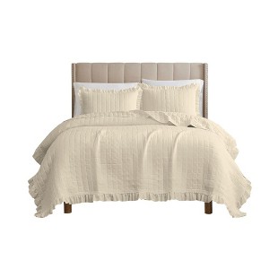 RT Designers Collection Belina 3 Pieces Washed Stitched Lightweight Quilts Set For Bedding Blue - 1 of 4