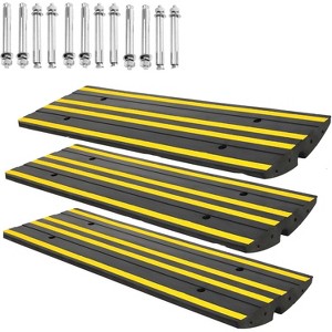 Heavy-Duty Rubber Driveway Ramps 3-Pack, 48" Low-Profile Threshold Ramps with Drainage Channels for Garage, Cars & Wheelchairs, Black