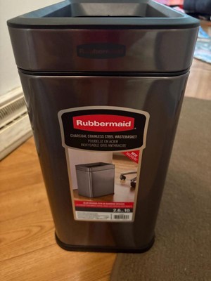 Rubbermaid Stainless Steel Wastebasket, Slim Open-Top Bin, 2.6 Gallons, Charcoal