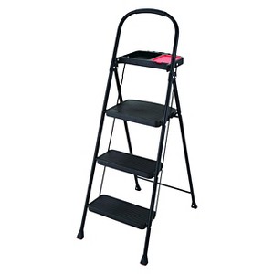 - Durable and lightweight 3-step steel stepstool with project tray and large steps