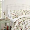 Add a fresh touch of spring style to your bedroom with this ruffled garden quilt from Laura Ashley. Multicolored appliqued diamond-band patterns run the length and breadth of this quilt and bring a touch of summer to any bedroom. Its traditional design and muted colors complement any furniture pattern and interior décor. Twin quilt (88"l x 68"w), full/queen quilt (90"l x 90"w) and king quilt (96"l x 104"w)