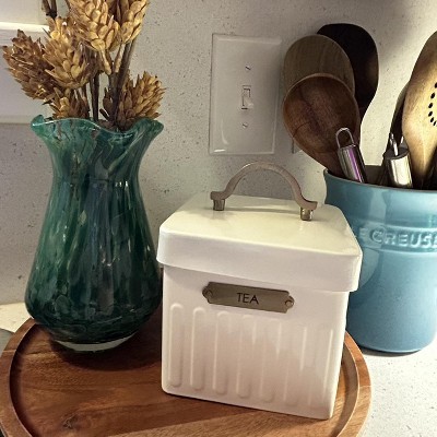 Nice quality, heavy glass vase. Perfect color for my kitchen! (See next to Le Cruset Caribbean utensil crock for color comparison.)