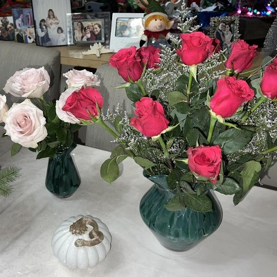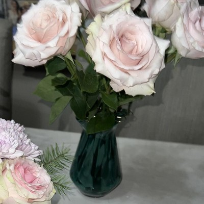 Absolutely gorgeous. Flowers look beautiful in this vase. Good quality - heavy and thick… wish they had more in stock. Would love this design in white