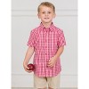 Classic Red Gingham Short Sleeve Button Down Shirt - Elevate your little one's wardrobe with this stylish and vibrant boys' red gingham shirt. Perfect for special occasions or casual outings, this classic red gingham shirt features a crisp button-down design, ensuring your boy looks his best. The unlined construction keeps it lightweight and comfortable, ideal for the summer months. In a striking red color, this boys' button-down shirt pairs effortlessly with various colors like white, black, gray, and even gold accessories for a more dressed-up look. The short sleeves make it a practical choice for warmer weather, keeping your child cool while maintaining a sharp, classic appearance. With its timeless gingham pattern, this boys' red gingham top is not just about looks; it's designed for comfort and durability. It's a go-to piece for any boy's wardrobe, perfect for layering or wearing on its own. Whether it's a family gathering, school event, or a playdate, this boys' red casual shirt is versatile for any occasion. Explore how this boys' red checkered shirt can be a staple in your child's fashion ensemble, making him the most stylish kid around!