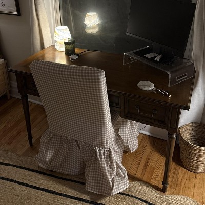 Ruffled Slipcover Dining Chair in Kale Gingham Taupe Cream - Threshold™ designed with Studio McGee