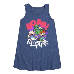Rugrats - Roar - Toddler and Youth Girls A-line Dress - Embark on a nostalgic adventure with the Rugrats graphic apparel collection! Showcasing beloved characters like Tommy, Chuckie, Angelica, Phil, Lil, and more, each design captures the playful spirit and imagination of the iconic animated series. Perfect for fans of all ages, these pieces bring childhood memories to life with fun, colorful style.