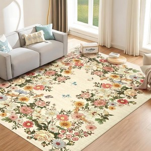 Rugs for Living Room, Washable Floral Area Rug Non Slip Soft, Low Pile Ultra-Thin Carpet for Bedroom, Kitchen, Dorm Room