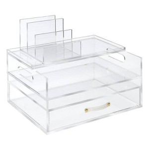 RUSSELL + HAZEL Acrylic Medium Solution: Clear Desk Organization Set, 4-Piece Office Organizer, Desktop Shelving & Holders
