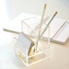 - Includes: 1 acrylic pencil cup with divider and card holder