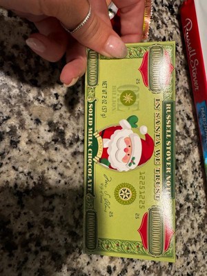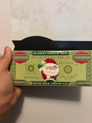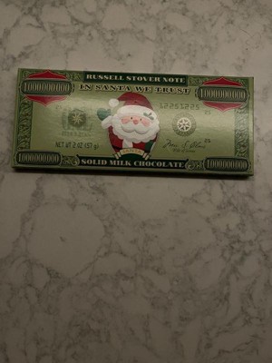 - Celebrate the season with RUSSELL STOVER Christmas Santa Money Solid Milk Chocolate Bar, 2 oz. - a festive holiday treat for children of all ages!