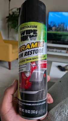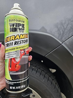 [This review was collected as part of a promotion.] I was impressed with Wipe New Ceramic Trim Restore Aerosol. It was easy to apply and immediately brought faded plastic trim back to a deep, clean black. The finish looks smooth and even, not greasy, and it has held up well after washing. A quick and effective way to refresh exterior trim without spending a lot of time.