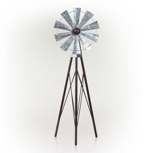 Rustic Bronze & Silver Metal Mini Windmill - Alpine Corporation: Garden Decor, Iron Construction