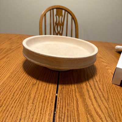 [This review was collected as part of a promotion.] This rustic ceramic oversized bowl is elegant, beautiful & versatile! The pedestal base allows it to be placed easily on a tabletop or mantel. It would be eye catching filled with faux flowers or anything that would be practical yet beautiful. The material is terracotta & I love the rustic warm vibes it gives. Such a beautiful piece to add to a room!