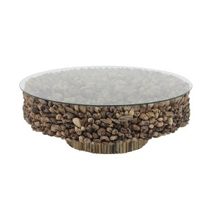 Rustic Driftwood Coffee Table Brown - Olivia & May: No Assembly, Glass Top, Wood Legs