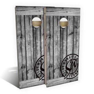 Product Name: Skip's Garage | Rustic Gray Barnwood Cornhole Board Set | All-Weather | Add Carrying Case