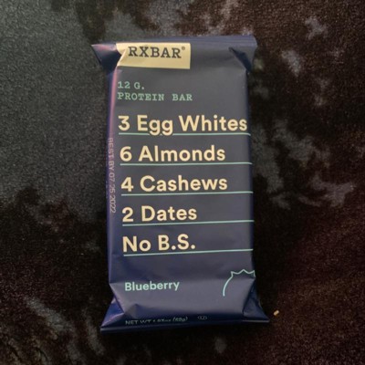 Simple, delicious ingredients make RXBAR protein bars a satisfying way to fuel your day. These wholesome blueberry bars are filled with ingredients you can recognize. Each snack bar is made with egg whites for protein, crunchy almonds or cashews, with dates to bind it all together, and no B.S. Enjoy the taste of simple ingredients that will crush any sweet cravings you have during the day; Just the right amount to fill you up, each serving contains 12g of protein (21% daily value), is gluten free, and ready to help you take on the day. Enjoy wholesome goodness worth snacking on. On your way to the gym, in the office or paired with your morning cup of joe, improve your daily routine with RXBAR Blueberry protein bars.