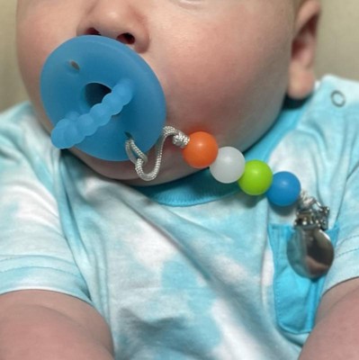 The best pacifier! Easy to clean, one solid piece, no plastic parts, comes in so many colors.