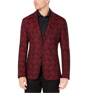 Ryan Seacrest Mens Jacquard Two Button Blazer Jacket, burgeneysolid, Small