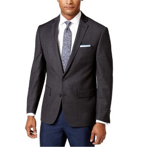 Ryan Seacrest Mens Windowpane Two Button Blazer Jacket, grey, 38 Long