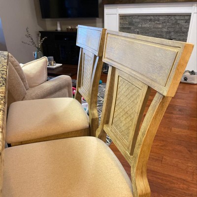Transform your space with the Rylan Natural and Beige Barstool, where rustic elegance meets modern comfort. This barstool features a rich brown finish with a hand-applied washed effect, creating a vintage charm that enhances any room. Its eye-catching design is highlighted by swooping sides, a straight-lined top rail, and a hand-woven rattan center detail, adding a touch of sophistication to your decor. The 30-inch seat height is perfect for counters 41 to 43 inches high, making it a versatile addition to your kitchen or bar area.