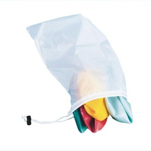 Nylon storage bag with a drawstring closure. The bag is 21" long and 13" wide. The bags come in our choice of assorted colors. This versatile and economical bag was originally designed to store our 20' diameter play parachutes but can store lots of items like balls, notebooks or a quick change of clothes.