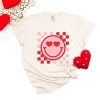 Product Name: S.W.Smiley Checkered Heart Eyes Smiley - Women's Garment Dyed Graphic T-Shirt