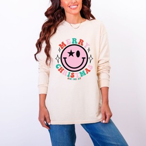 Product Name: S.W.Smiley Merry Christmas Smiley - Women's Garment Dyed Long Sleeve Graphic T-Shirt