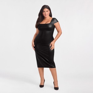 Women's S3 Sculpting Shapewear Square Neck Cap Sleeve Faux Leather Midi Dress - 1 of 4