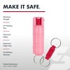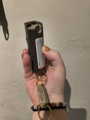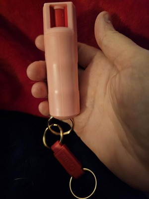 [This review was collected as part of a promotion.] Protection in the palm of your hand! This pepper spray fits right in your hand. Its easy to activate for fast easy use in case of emergency! It works at 10 to 12 feet. So you can spray from a good distance and be able to run. I like knowing have this if needed. I like the little ring that can hook onto anything but unclips with a quick push of a "button". Everyone should carry this.
