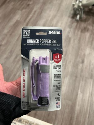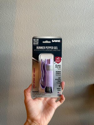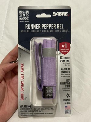 Take back your confidence to run without fear with the SABRE Runner Pepper Gel with Adjustable Hand Strap. Pepper gel is safer with greater range; this canister contains 35 bursts (5x the competition) for protection against multiple threats at a safe distance. With an industry-exclusive HPLC laboratory, only SABRE guarantees its maximum strength formulation in every canister to help give you peace of mind, certainty, reliability, and safety when you need it most. Unlike pepper spray, pepper gel resists wind blowback and is even safe to use indoors. Made for runners and outdoor exercise, this pepper spray comes with an adjustable hand strap for immediate access to protection that stays in place during workouts. The hand strap also features a reflective SABRE logo to increase your visibility to drivers at night. UV marking dye helps the authorities identify an aggressor after being sprayed, so you can focus on getting to safety. SABRE Pepper Gel is made in the USA.