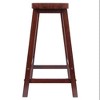 The saddle seat counter stool provides extra seating for your kitchen or home bar. It's available as a counter stool at 24" or as a barstool at 29". The seat is contoured to let you sit comfortably for hours. This backless counter stool includes footrests for added support. Its sturdy hardwood frame and wood legs offer stability. This counter stool holds up to 220lbs. It has a rich and smooth walnut finish that beautifully complements both modern and traditional décors.