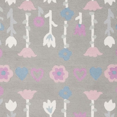 Enhance your living space with the charming aesthetic of this hand-tufted wool area rug, crafted with care in India. Measuring a substantial 9 feet by 12 feet, this large rectangle rug boasts a delightful height of 1/4 inch, making it a plush addition to any room. Its serene grey base is enlivened by playful patterns of pink, along with touches of soft blue and light lavender hues depicting stylized floral and heart shapes in a symmetrical arrangement. This piece seamlessly marries traditional handcrafted artistry with a youthful and modern design, ideal for adding a hint of softness and whimsy to your home decor. Whether gracing a spacious living room or being the focal point of a bedroom, this rug promises to be a conversation starter while providing comfort underfoot.