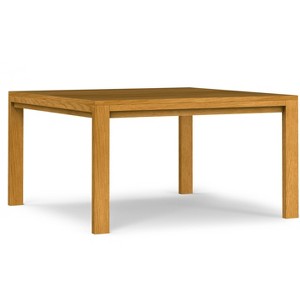 Gather 'round the WyndenHall Saige Square Dining Table for memorable meals and moments with loved ones. This 54-inch solid wood table combines timeless elegance with modern simplicity, perfect for contemporary and transitional dining spaces alike. Crafted from high-quality oak veneer with an engineered wood core, the tabletop showcases the natural beauty of wood grain while resisting warping and cracking. The inset apron and thick, straight legs wrapped around the table's edge create a robust, dimensional look that exudes strength and stability. Standing at a comfortable 29.5 inches high with a 25.3-inch leg clearance, this versatile 54x54 dining table comfortably seats up to 8 people, making it ideal for both intimate family dinners and larger gatherings. The hand-applied lacquer finish not only enhances the oak's exquisite grain but also protects the surface for years of daily use. Whether you're hosting a dinner party or using it as a multipurpose workspace in your home office, this mid-century inspired square table adapts effortlessly to your needs. Assembly is a breeze with included hardware and illustrated instructions, allowing you to quickly transform your dining area into a welcoming hub for culinary adventures and cherished conversations.